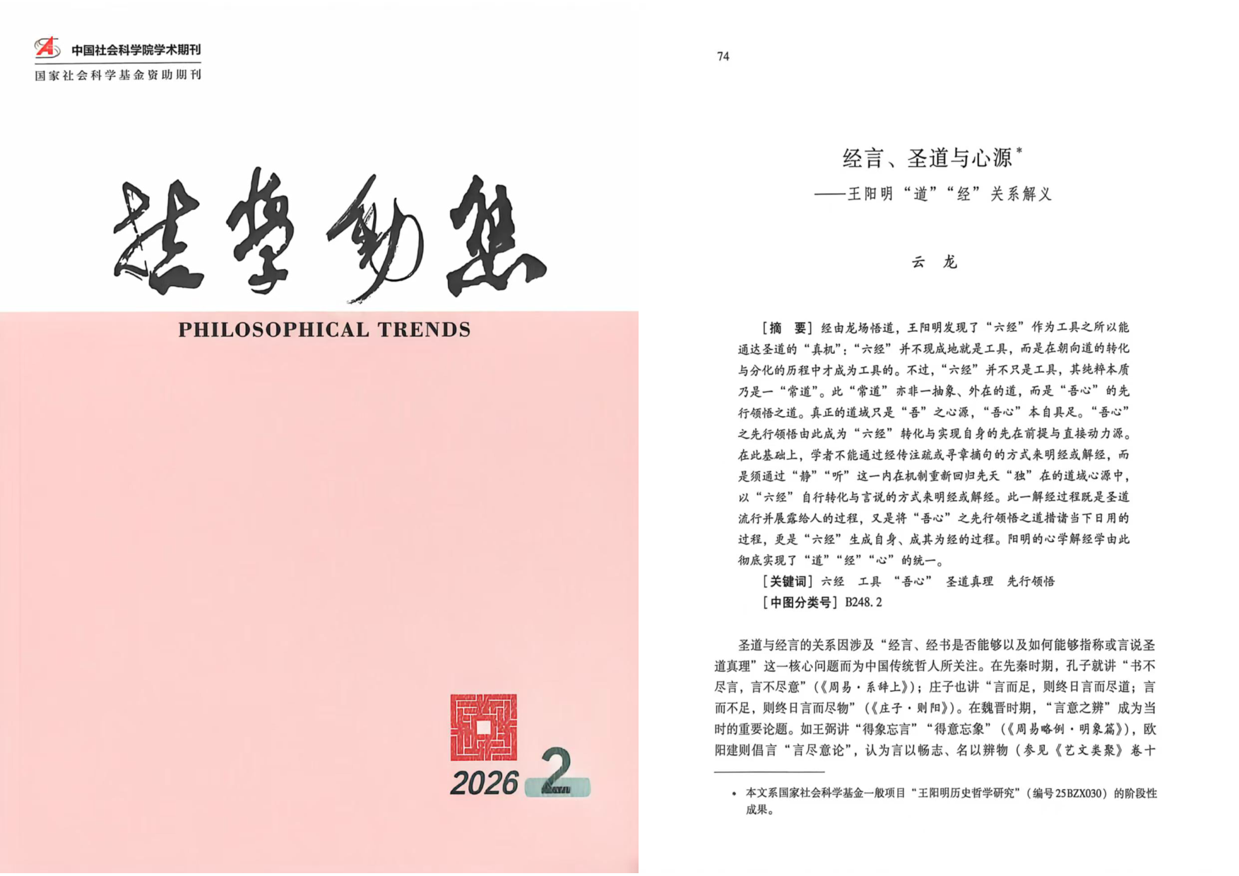 云龙老师在《哲学动态》2026年第2期发表论文