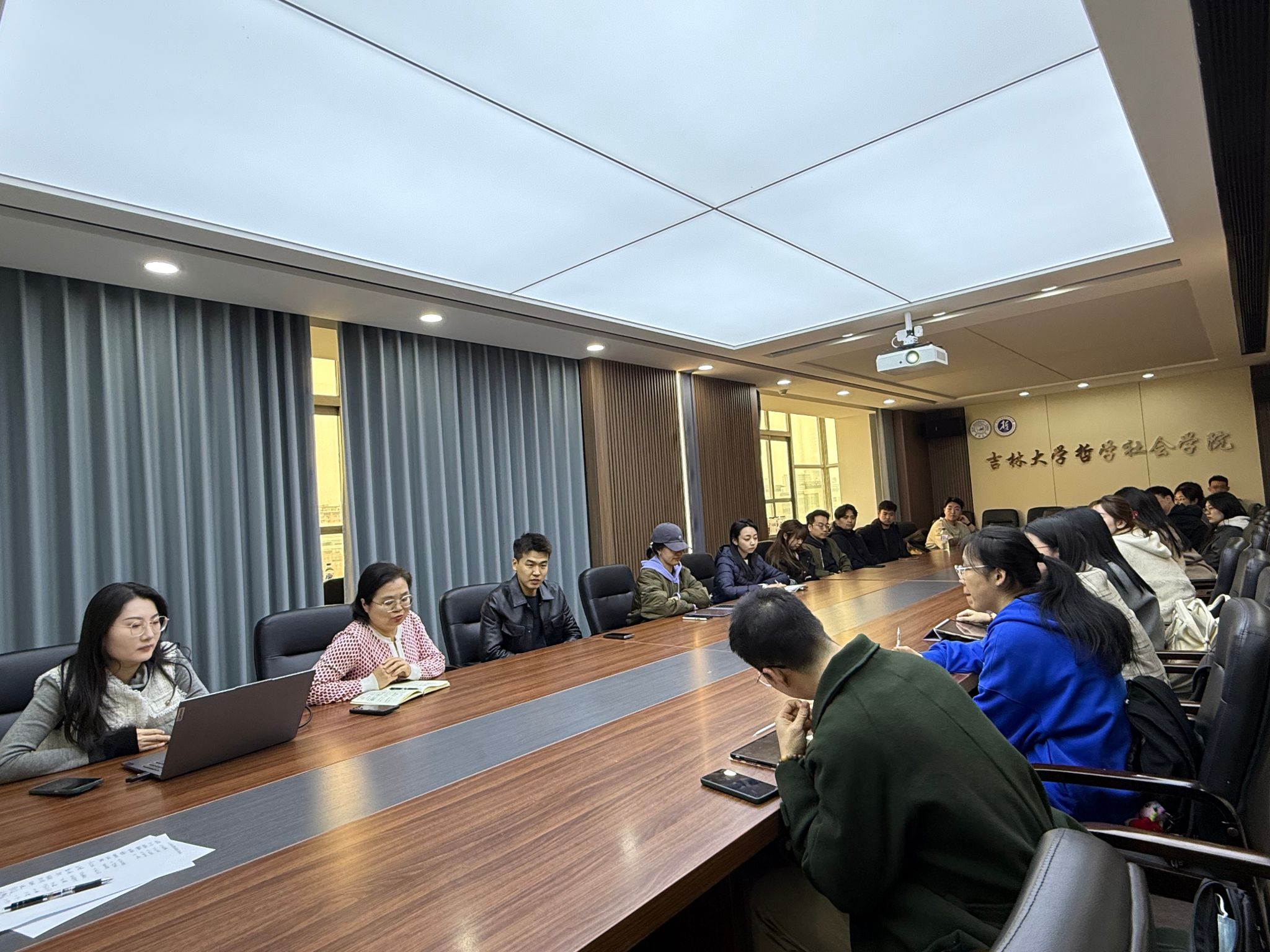 为精准把握研究生返校后的思想动态,及时回应学生在学术研究及日常学习生活中的实际关切,扎实推进新学期研究生思想政治教育与管理服务工作,2026年3月26日下午14时,哲学社会学院在东荣大厦A908会议室召开研究生思想动态座谈会暨新学期工作部署会。学院党委副书记赵洁老师、研究生辅导员于洋老师出席会议,各在校博士、硕士研究生班级班长及团支书参加会议。