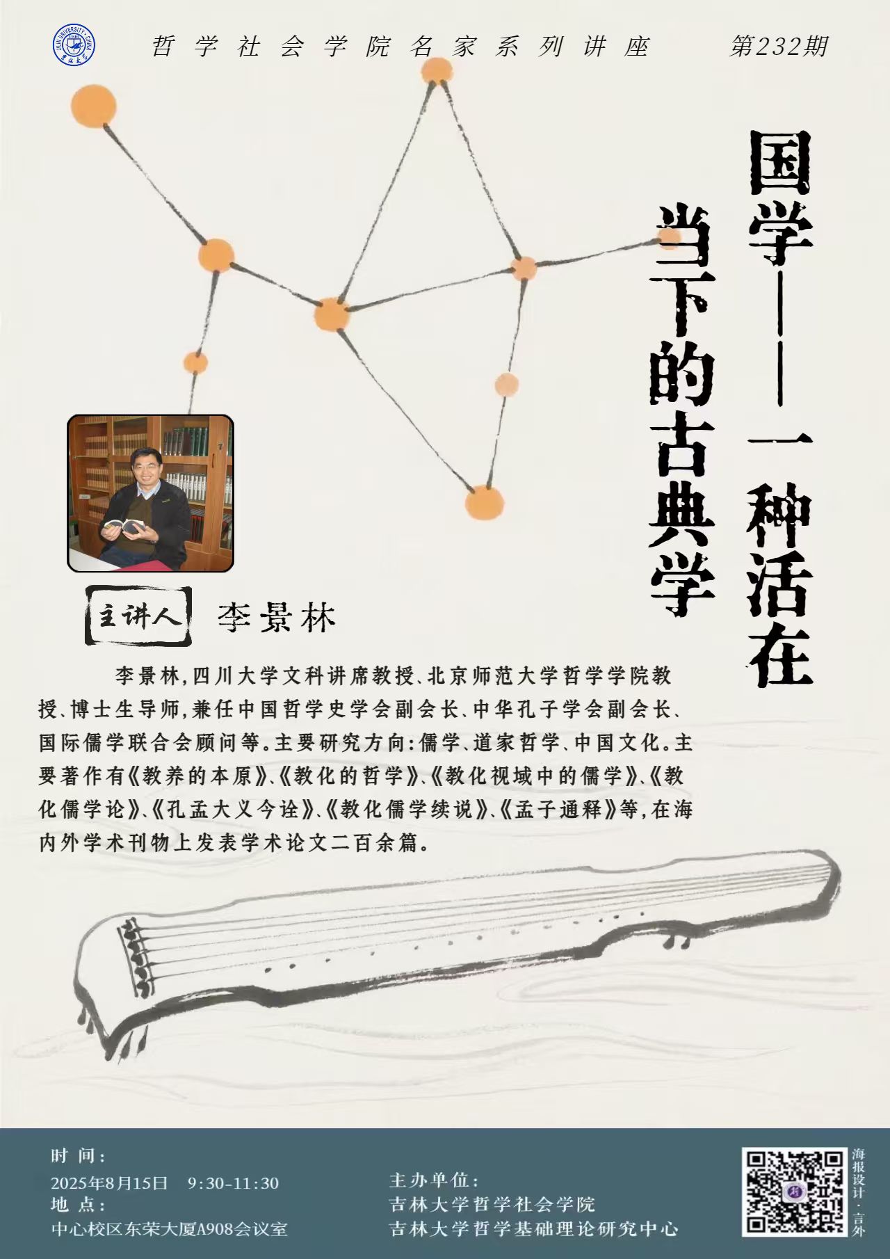 【哲学社会学院名家系列讲座第232场】李景林:国学——一种活在当下的古典学