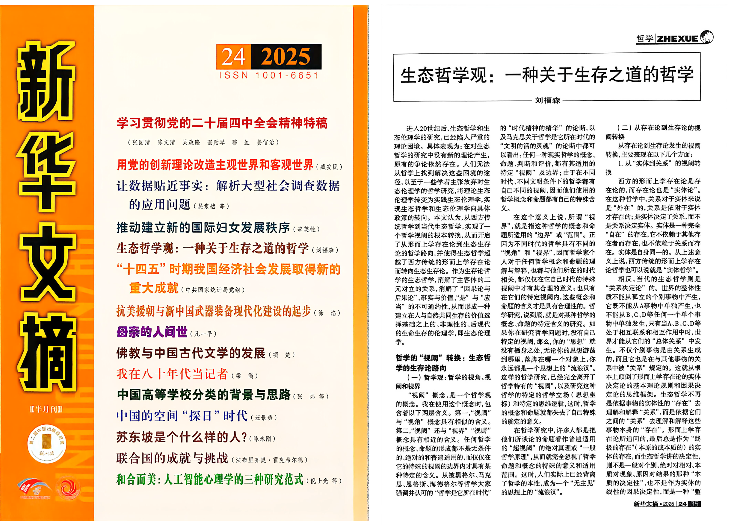 期的论文《生态哲学观:一种关于生存之道的哲学》被《新华文摘》