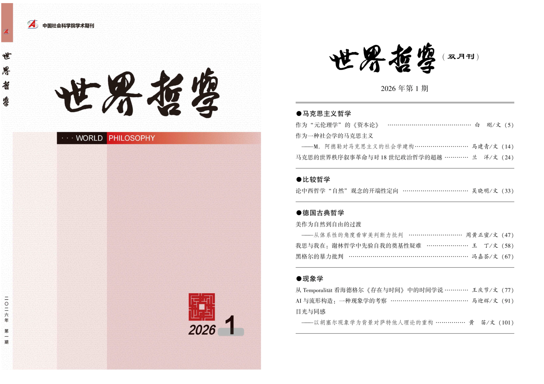 白刚教授在《世界哲学》