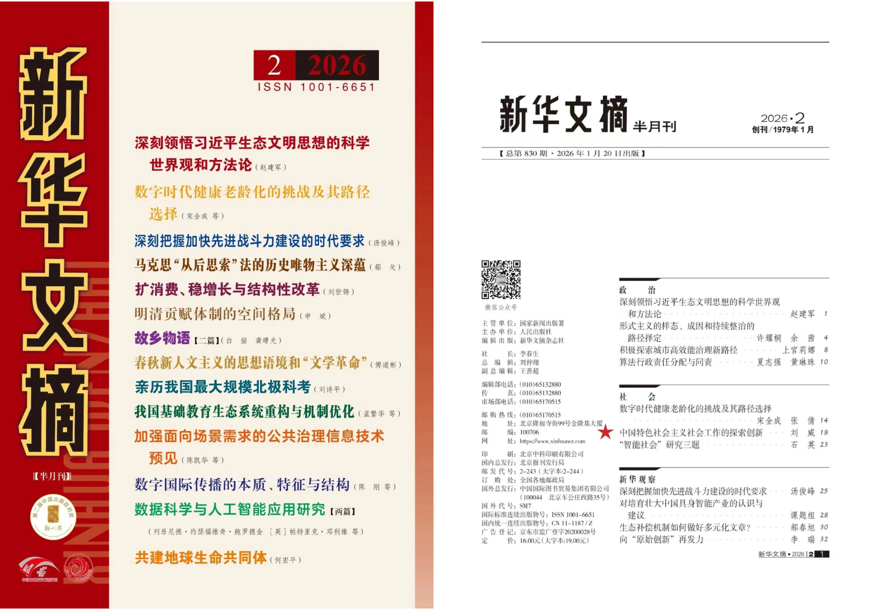 刘威教授论文被《新华文摘》2026年第2期全文转载