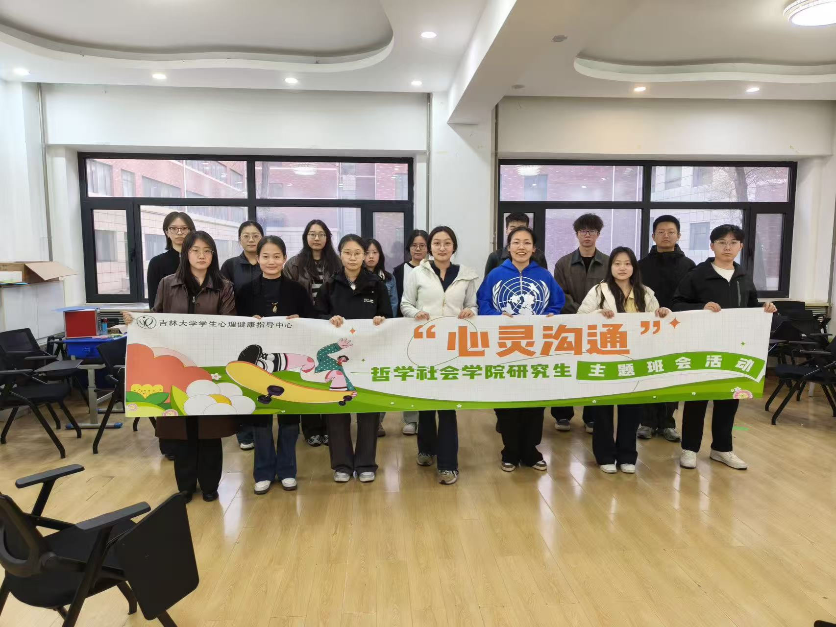 为帮助2025级研究生新生关注自身心理韧性,拓展心理支持资源,实现从他助到自助、从自助到互助的成长,在吉林大学学生心理健康指导中心的支持下,哲学社会学院于4月9日至17日在敬信楼A101教室,分批次组织各班级研究生开展“心灵沟通”主题班会活动。本次活动由各班班长及心理委员共同主持,2025级全体研究生积极参与。
